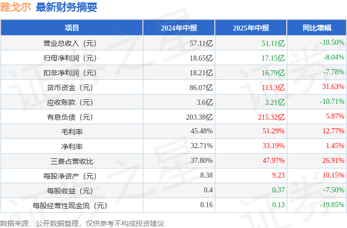 雅戈尔(600177)2025年中报简析: 净利润同比下降8.04%, 盈利能力上升
